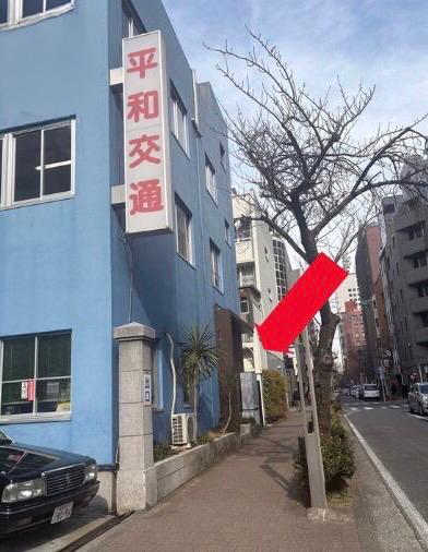 ④そのまままっすぐ進むと「平和交通(ヘイワタクシー)」の会社が見えます。