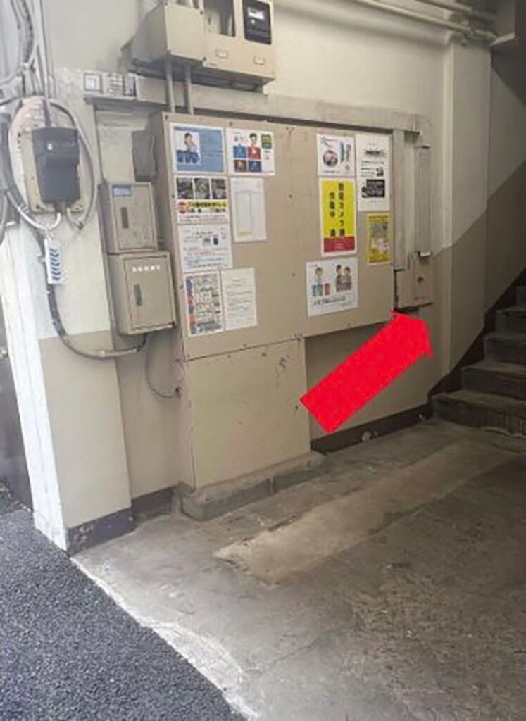 ⑥当店は緑色のプレート(弁天ビル)の4階にございます。階段よりお入りください。